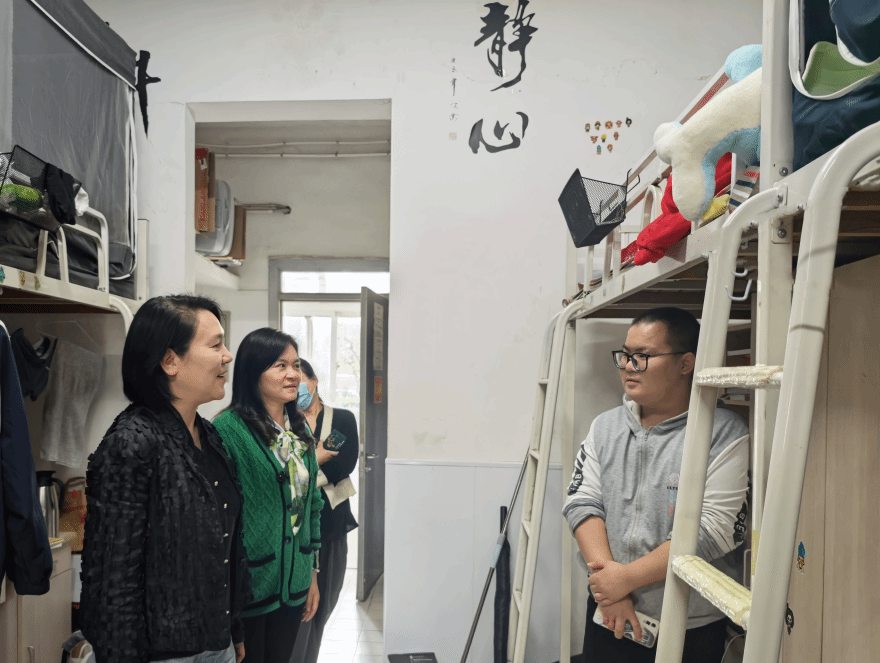 在男生公寓4号、5号、6号、7号楼,就学生思想、学习、生活、发展等方面问题进行交流,她要求各楼栋管理员加强宿舍管理和检查。同时检查了6号楼学生社区服务站的建设情况,鼓励师生充分利用场域空间,发挥“一站式”学生社区育人功能。