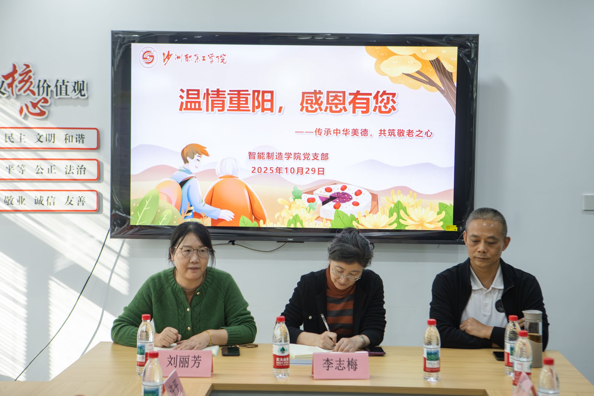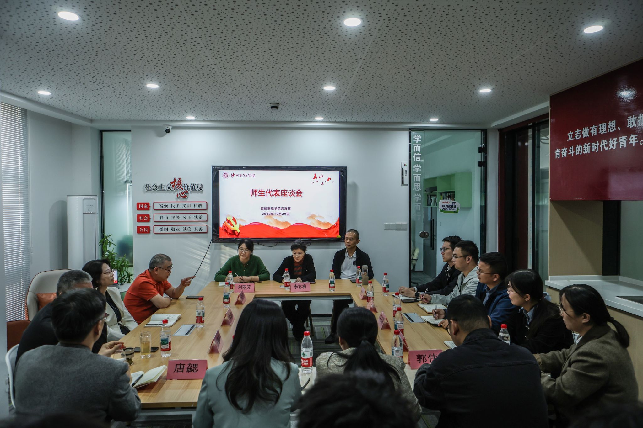 10月29日下午,我校在“一站式”学生社区召开主题为“温情重阳 感恩有您”师生代表座谈会,校党委副书记、院长章雯,学校关工委负责人,“一站式”学生社区第一党小组成员以及智能制造学院师生代表出席座谈会。