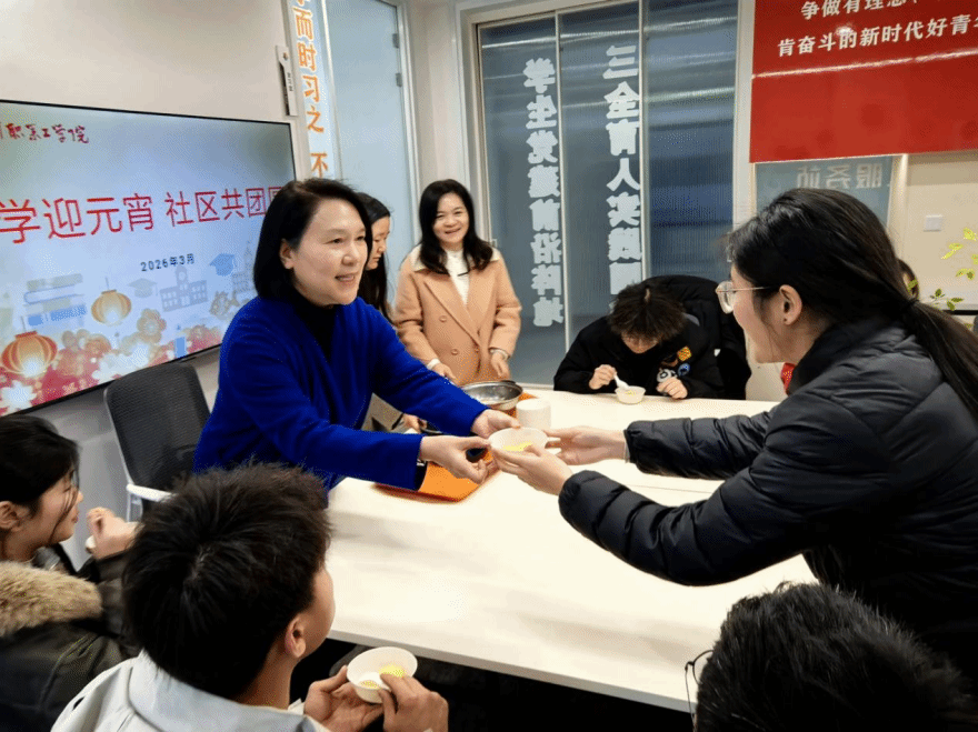 现场,同学们踊跃参与猜灯谜,感受传统民俗魅力。陈海英为大家盛上热乎乎的汤圆,师生围坐一起品味团圆的滋味,围绕校园学习、生活等话题亲切交流,共话成长。学校在各个公寓楼大厅提供免费元宵,送上元宵祝福,让学生感受到沙工大家庭的温暖与关怀。